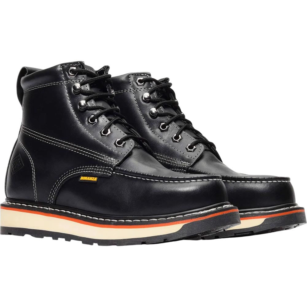Built for tough jobs and demanding environments, the Frontier Dual 6" Work Boots in Black combine rugged durability with modern comfort. The premium full-grain black leather upper delivers long-lasting performance, while the 360° Goodyear Welt construction ensures flexibility and strength. Featuring a non-marking oil and slip-resistant TOUGH WEDGE outsole, these boots provide excellent traction on various surfaces. The removable shock-absorbing PU insole keeps feet comfortable throughout the workday. Available with a steel toe option (BAT-612), these boots meet ASTM safety standards, making them ideal for construction, warehouse, and industrial work.