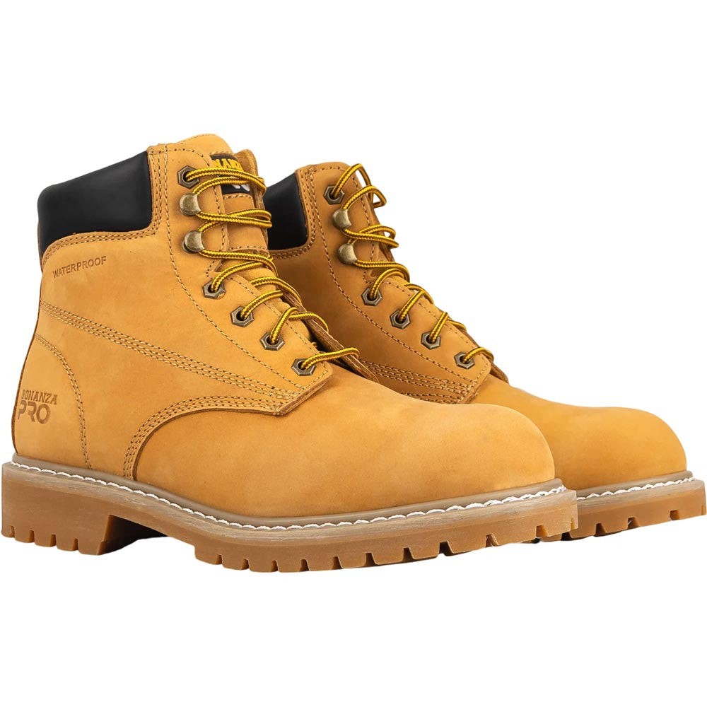 Built to handle tough conditions with ease, the Bonanza Trailhead Pro 6" in Tan is a rugged yet comfortable work boot designed for professionals who demand durability and support. Crafted from full-grain, water-resistant nubuck leather, these boots offer protection against the elements while maintaining flexibility. A waterproof membrane and breathable mesh lining work together to keep your feet dry and ventilated throughout the day. The removable shock-absorbing PU insole ensures superior comfort, while the high-abrasion, oil-resistant rubber outsole provides exceptional traction on various surfaces. Reinforced with 360° Goodyear welt construction, these boots are built to withstand years of heavy use.