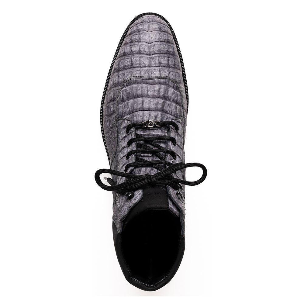 Discover the Leoni Oil Gray Boots from Marco Di Milano, where rugged functionality meets refined luxury. These boots are crafted from genuine caiman crocodile leather in a striking oil gray, offering a unique texture and sophisticated color. The full leather cushioned lining ensures a comfortable fit, while the padded ankle provides added support. Finished with a signature lace ornament and a rugged rubber outsole, these boots combine durability with a touch of elegance, making them perfect for both casual and formal settings.