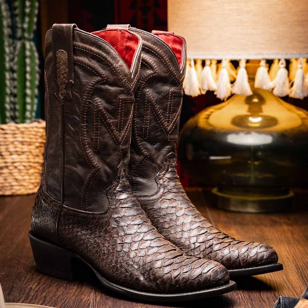 The KANSAS Brown Python Boot works seamlessly with both casual and polished looks. Pair it with dark denim and a checked Western shirt for a relaxed ranch-ready outfit, or elevate it with tailored chinos and a blazer for a modern, upscale Western vibe. For a coordinated finish, match it with the Arkansas Brown Python Belt. Whether you're headed to a country event, a casual night out, or a special occasion, these boots deliver warm sophistication and statement-making craftsmanship in every step.
