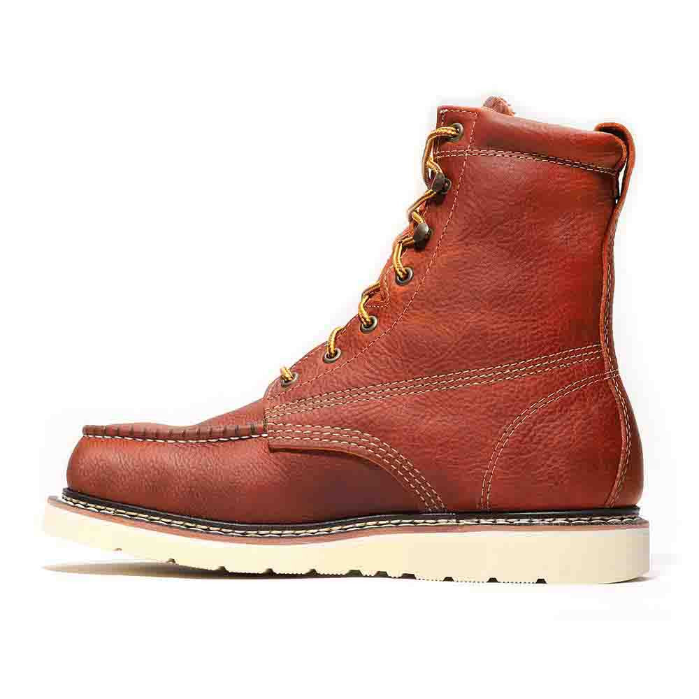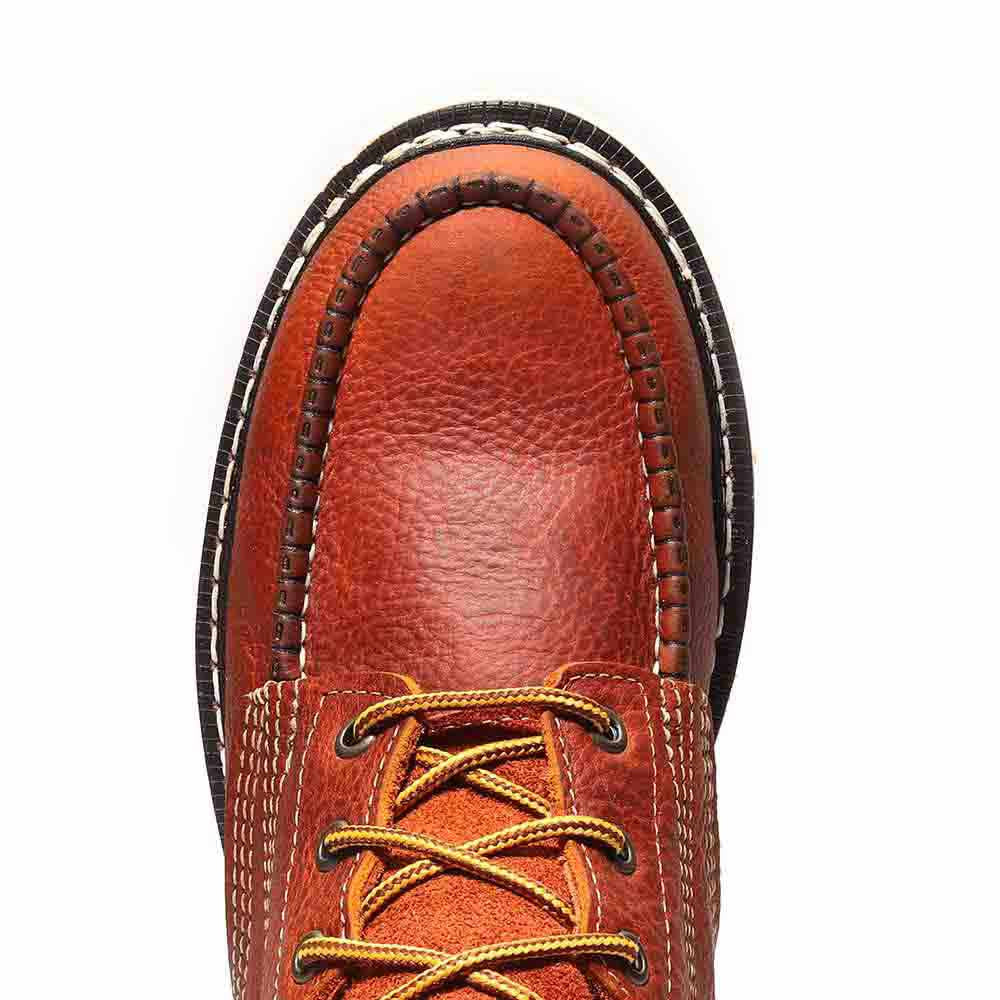 Meet the demands of your workday head-on with the Golden Brown Frontier Moc Toe Boot. Offering a unique blend of supreme durability and a classic aesthetic, the robust Goodyear Storm Welt construction ensures a long-lasting companion for every blue-collar hero.