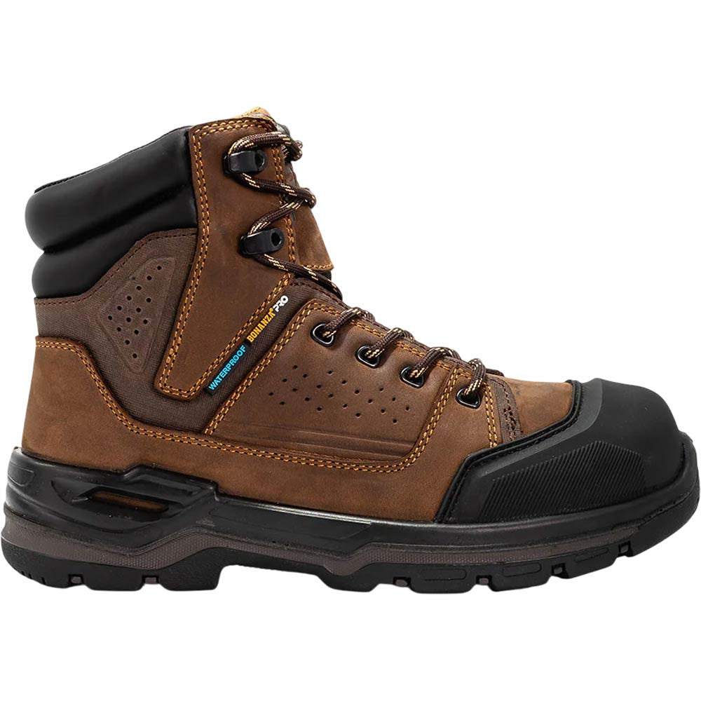 Built for the toughest jobs, Bonanza Raptor 7" Dark Brown Waterproof Work Boots are designed to perform in demanding environments. A waterproof membrane keeps moisture out, so you stay dry no matter the conditions. The TPU toe guard enhances durability, while electrical hazard protection adds an extra layer of workplace safety. Featuring a puncture-resistant midsole and slip-resistant outsole, these boots help you move with confidence on any terrain. Whether you're on a construction site, working in heavy industry, or tackling outdoor jobs, the Raptor 7" is made to keep up with you.