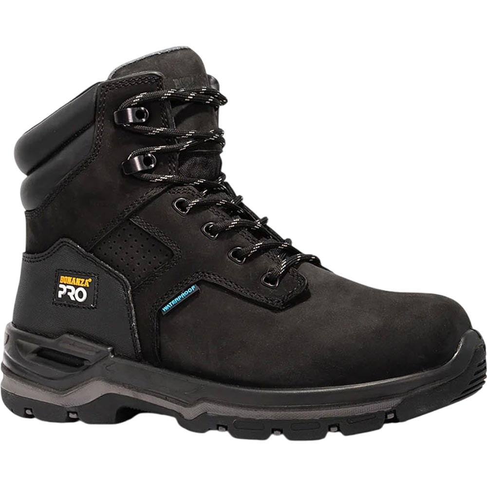 The Bonanza Woodland 7" Black Waterproof Work Boots are designed for professionals who demand durability, protection, and long-lasting comfort. Featuring a waterproof membrane, these boots keep your feet dry in any condition, while the oil-resistant construction ensures resilience in harsh work environments. The electrical hazard protection and puncture-resistant midsole provide extra safety on the job, and the slip-resistant outsole delivers a firm grip on any terrain. Whether you're working on construction sites, in industrial settings, or tackling outdoor projects, the Woodland 7" in Black offers unmatched performance and reliability.