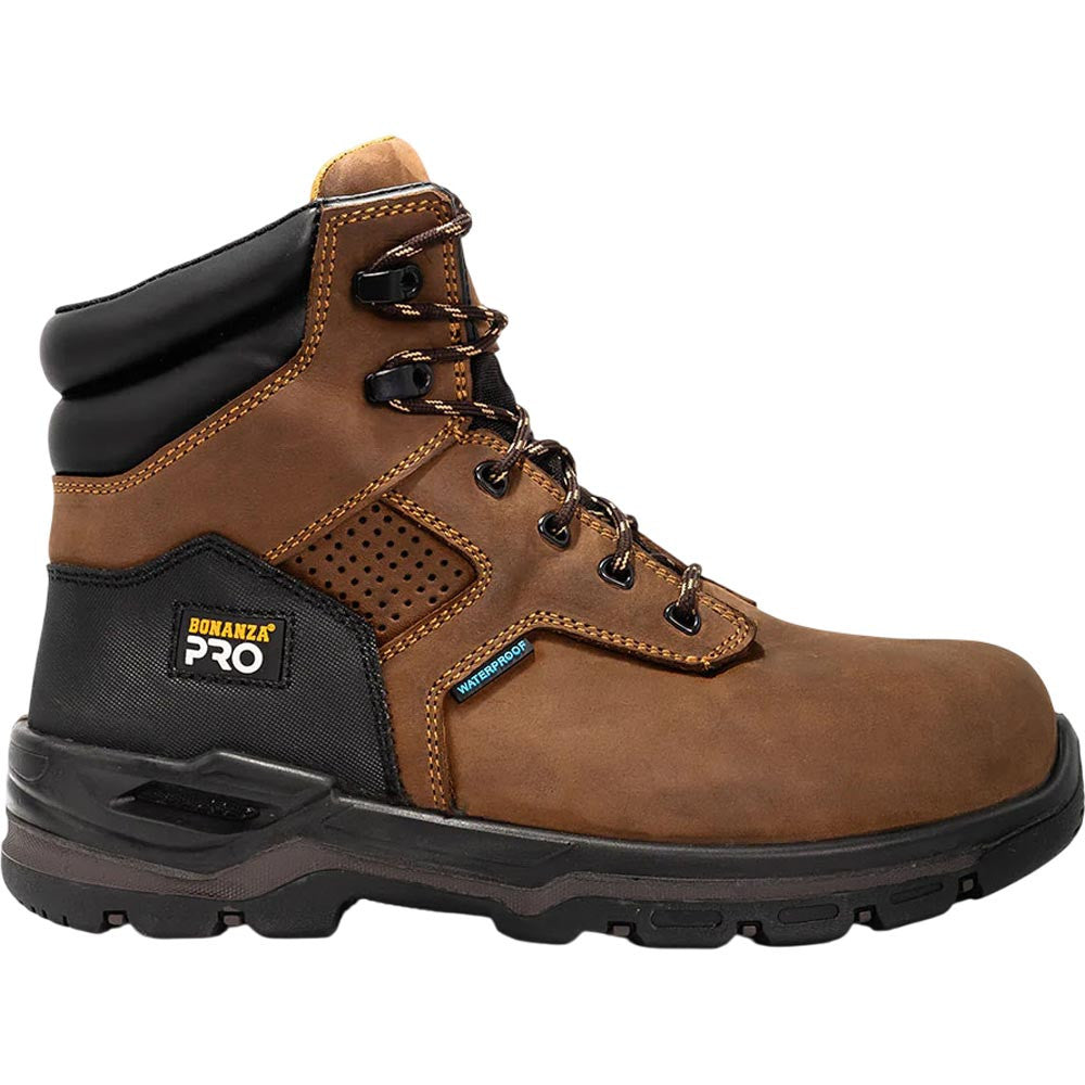 Built for the toughest job sites, the Bonanza Woodland 7" Dark Brown Waterproof Work Boots offer the perfect blend of protection, comfort, and durability. Designed to withstand harsh conditions, these boots feature a waterproof design to keep your feet dry in any environment. The oil-resistant construction and electrical hazard protection add extra layers of safety, while the puncture-resistant midsole guards against sharp objects. A slip-resistant outsole ensures stability, making these boots ideal for rugged work environments. Whether you're on a construction site, working outdoors, or handling industrial tasks, the Woodland 7" is built to perform.
