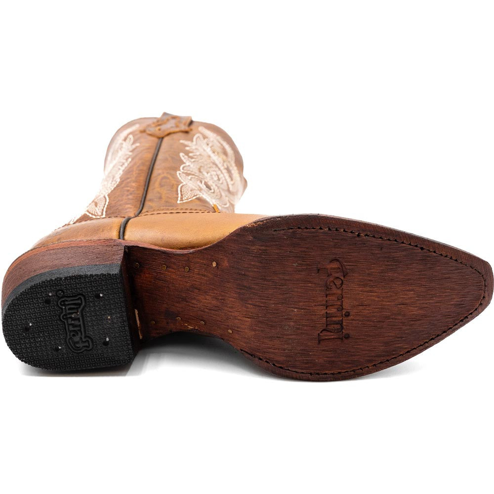 Step into elegance with the Ferrini Mae Snipped Toe Western Boot. Designed for those who want to add a dash of sophistication to their Western wardrobe, this boot is perfect for any cowgirl looking to make an impression. The sleek snipped toe offers a polished look while maintaining the boot's rustic authenticity. Crafted from luxurious full-grain leather, the Mae boot is both durable and comfortable. Its 1 1/2" cowboy heel ensures stable support, making it ideal for both urban adventures and country outings.