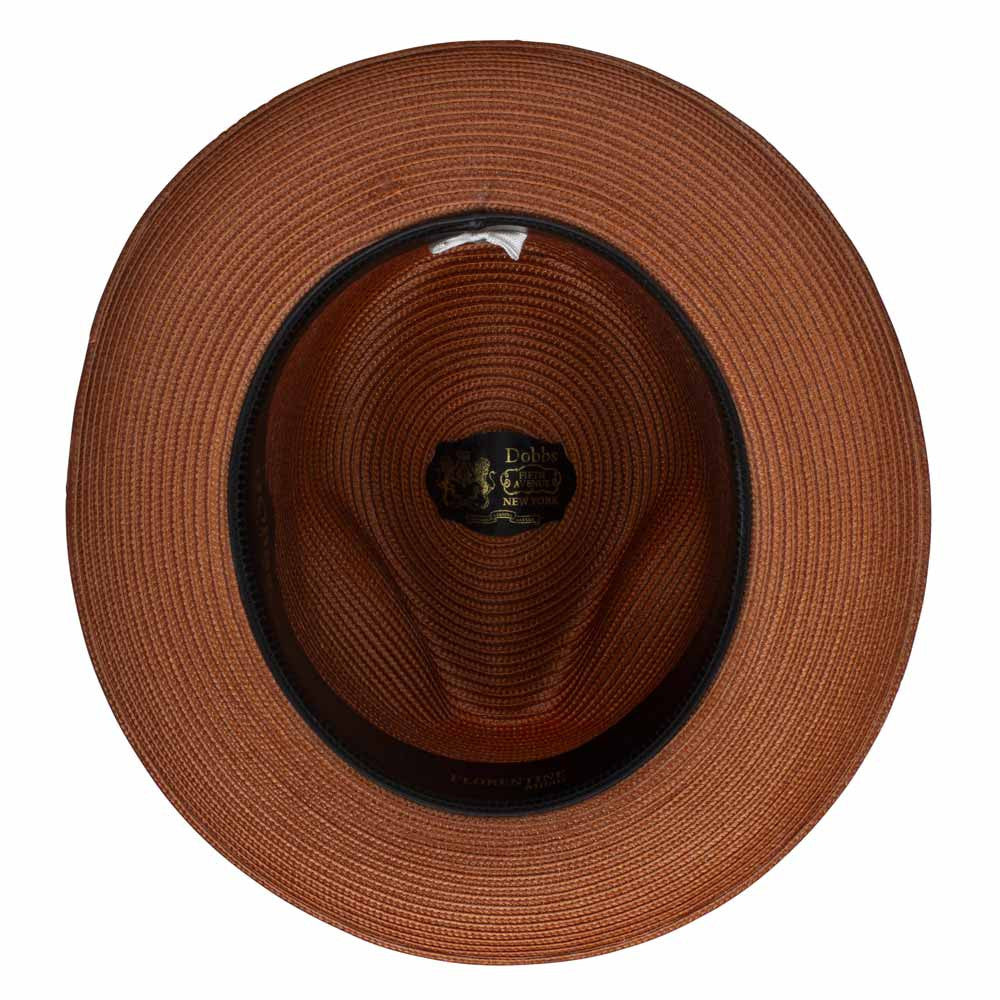 Make a statement with the Dobbs Harrod Copper. The warm copper hue and elegant design add a bold yet sophisticated flair to your ensemble. Crafted from durable Florentine Milan Straw, this hat offers lightweight comfort and a firm finish that maintains its shape. Ideal for outdoor gatherings or adding a stylish accent to your formal attire, the Harrod Copper is a standout choice for the modern gentleman.