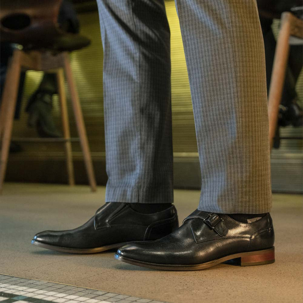 Pair this black monk strap with a tailored suit for a polished, professional look or dress it down with trousers and a crisp button-up shirt for a smart-casual ensemble. Its sleek design makes it a go-to choice for any dressy occasion.