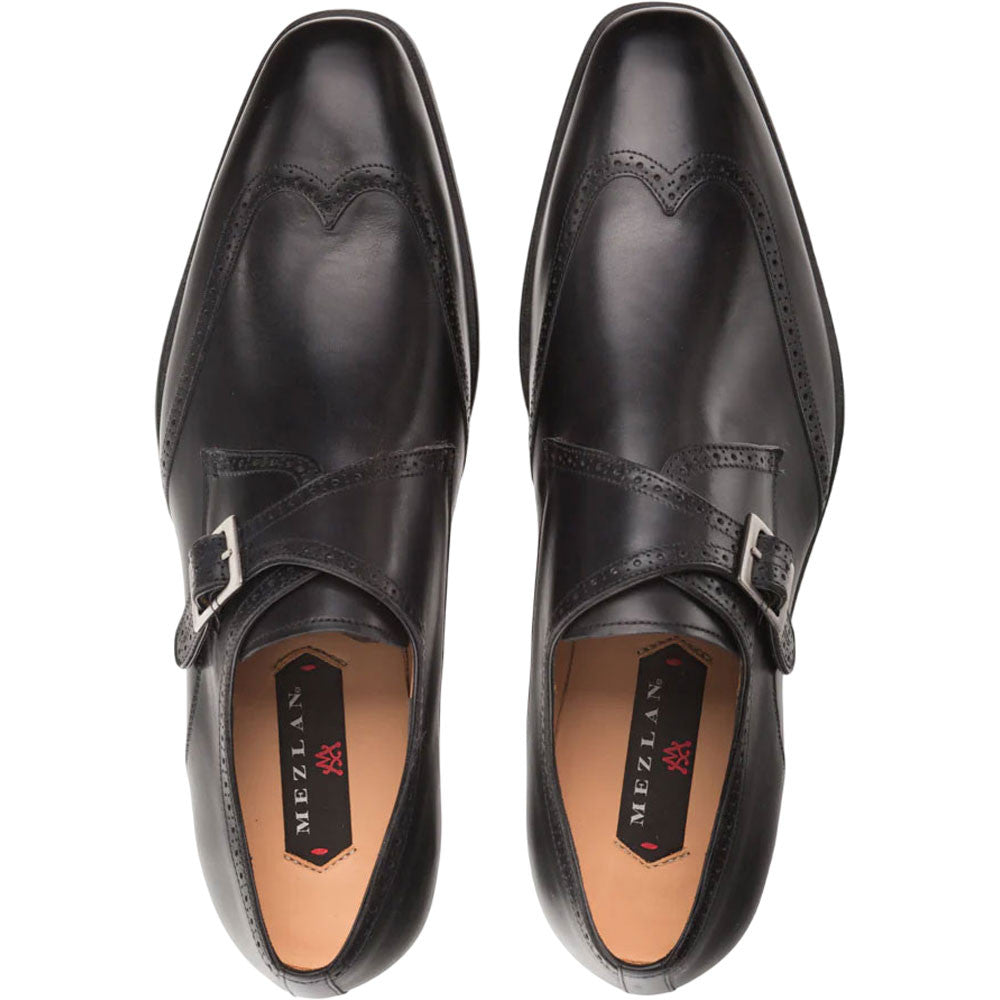 The Mezlan Forest Wing Tip Monk Strap in Black is the epitome of modern professionalism. This shoe merges classic wingtip detailing with the bold look of a monk strap, creating an effortlessly stylish piece that transitions seamlessly from the office to formal settings. The hand-burnished European calfskin provides a sleek, polished finish, while the perforated trim adds a layer of elegance. With an injected memory foam insole and a durable leather-and-rubber sole, this shoe offers both sophistication and all-day comfort. Handmade in Spain, the Forest is designed for the modern gentleman who values fashion and function.