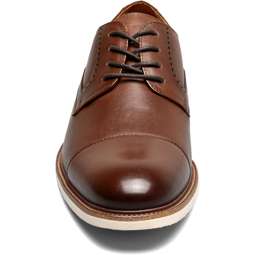 Indulge in the rich elegance of the Stacy Adams Wesbridge Cap Toe Oxford in Choco. This exquisite shoe combines the warmth of a burnished chocolate leather upper with a strikingly modern contrasting sole, creating a piece as stylish as it is versatile. These contemporary features enhance the traditional cap toe detail, making the Wesbridge a perfect blend of old-world charm and modern sophistication. It's a shoe designed for a man who wants to make a subtle yet impactful style statement.