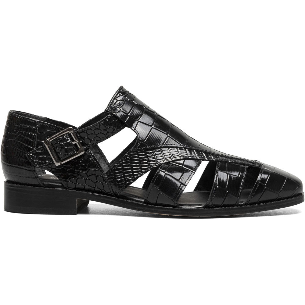 Elevate your casual summer ensembles with the Stacy Adams Calandro City Sandal in Black. This sandal features a sleek crocodile and lizard print leather upper that provides a touch of luxury, set against a genuine leather sole for a look of understated elegance. The fully cushioned Memory Foam footbed ensures that comfort accompanies you throughout the day, making these sandals as practical as they are stylish.