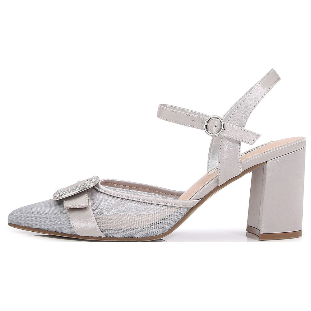 Illuminate the room with the Bianca 3" Silver pump-a showstopper that reflects your inner star. Its glimmering silver mesh and rhinestone buckle make a bold statement. A steady block heel offers night comfort, while the elegant shape pairs beautifully with eveningwear. Designed for radiant occasions, lady couture shoes like this silver stunner bring confidence, class, and sparkle to your every step. Perfect for prom, weddings, or any event worth celebrating in style.