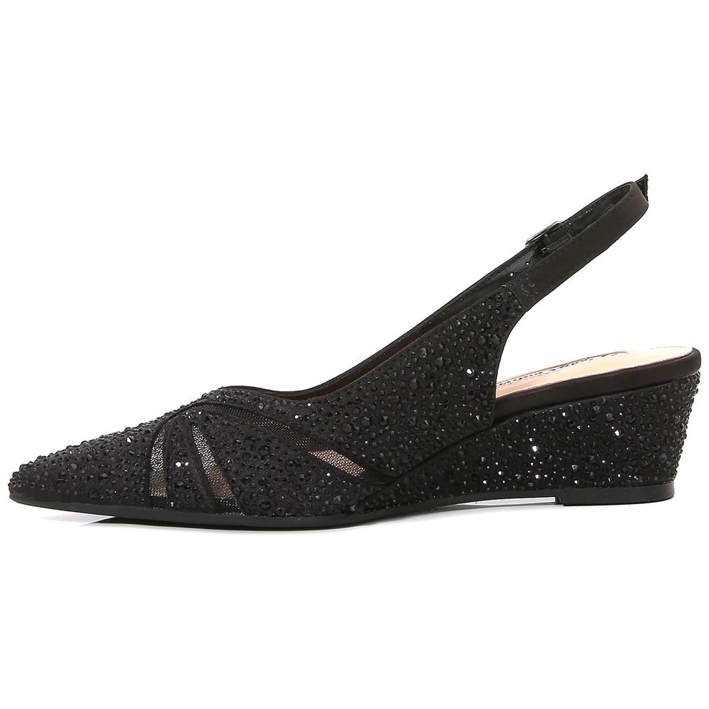 The Daniela 2" Black wedge pump redefines elegance with a bold, modern twist. Crafted from satin and rhinestone, this shoe delivers understated glamour for any formal occasion. The secure slingback and stable wedge offer both grace and comfort. Whether it's an evening soirée or a professional event, Lady Couture Shoes like this ensure you look poised with every step. Classic never looked so effortless.
