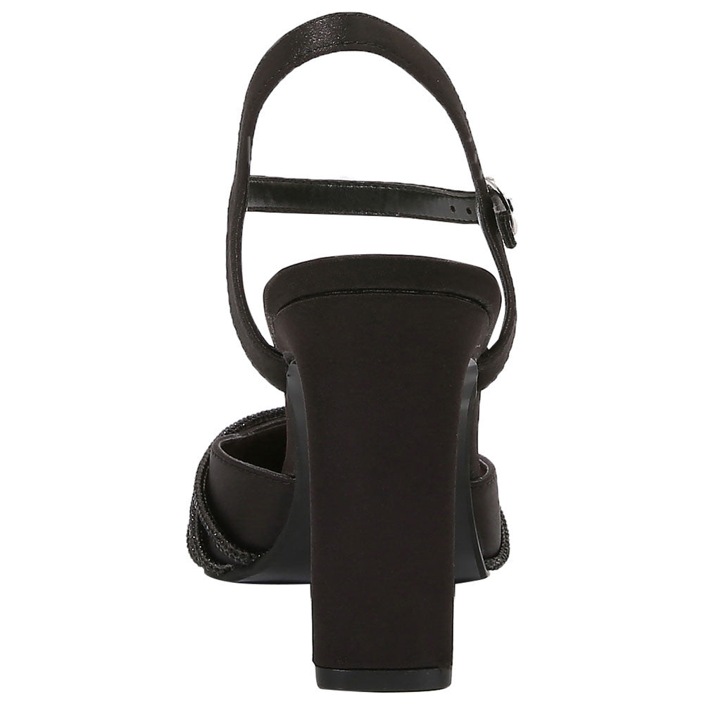 * Satin upper with rhinestone embellishments