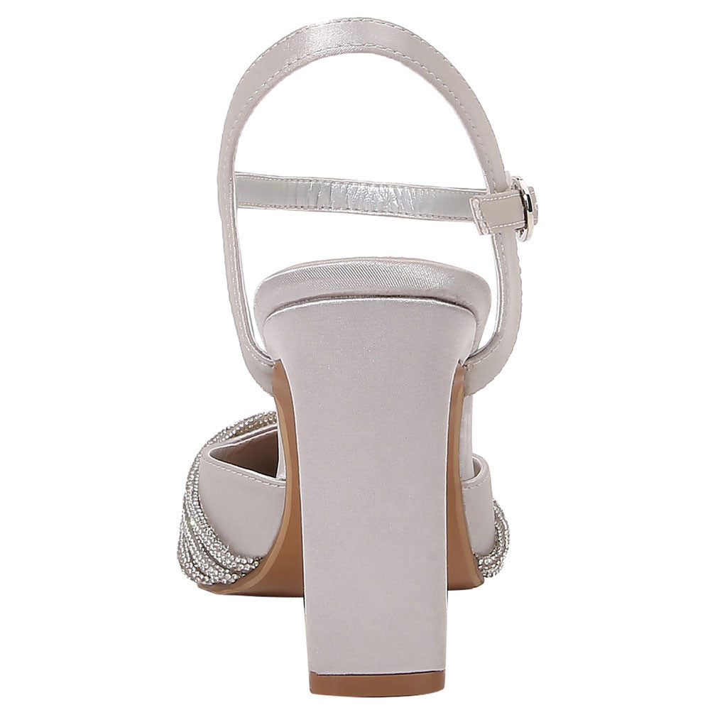 * Shimmering silver satin upper with shine