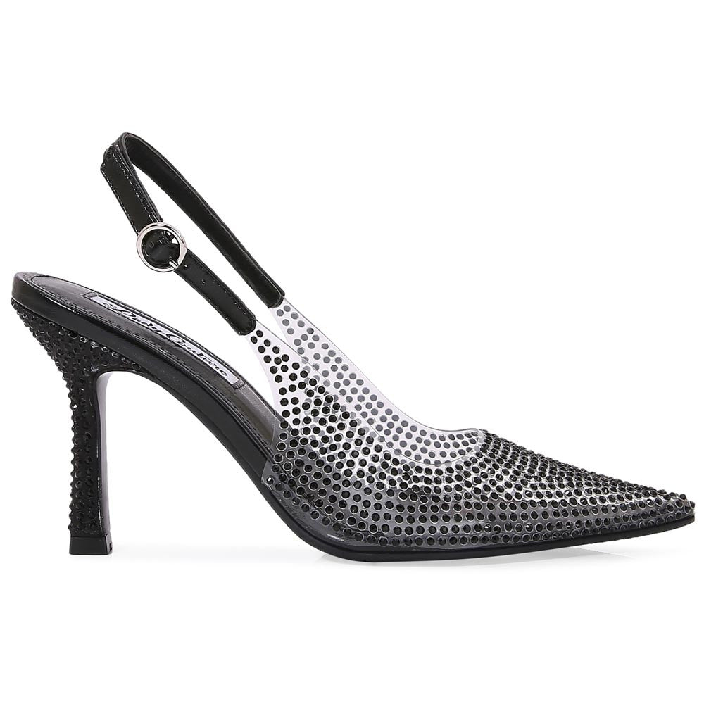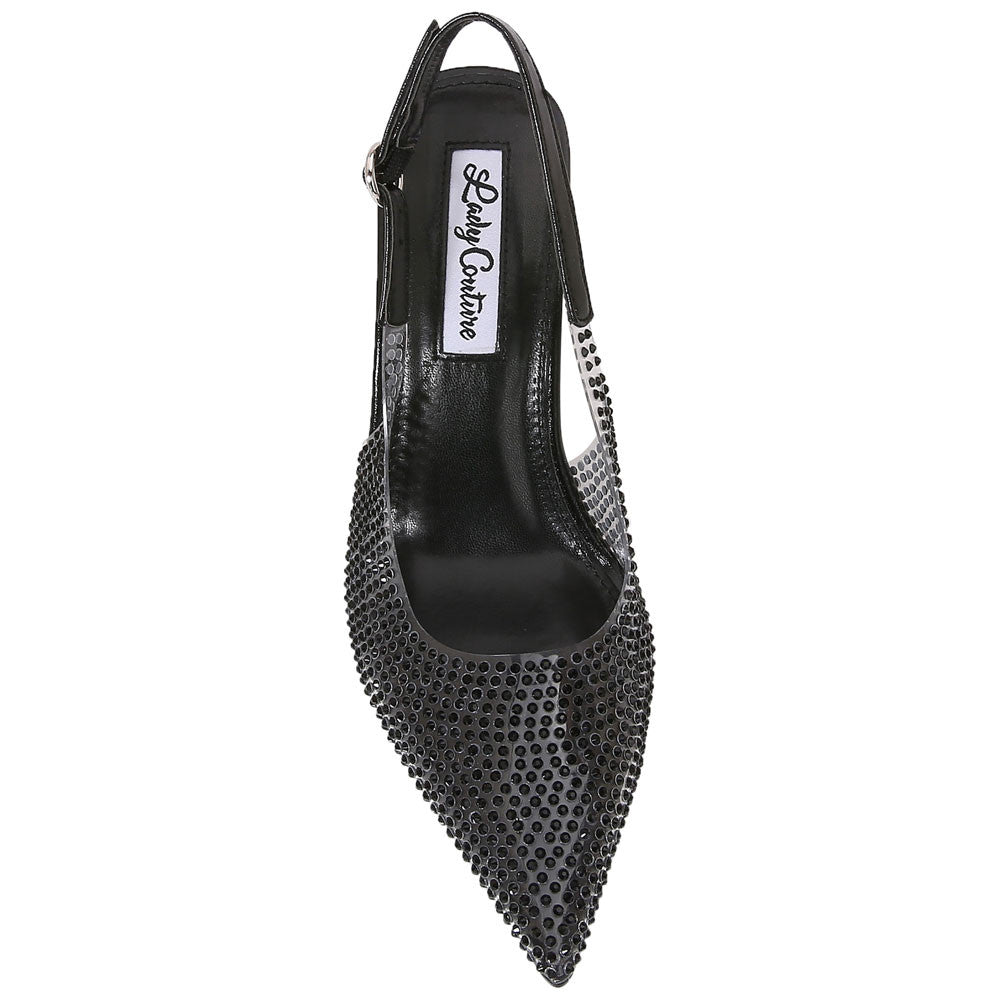 Make an unforgettable impression in the Lady Couture Irene Heel in black. Wrapped in glistening rhinestones, this pointed-toe sandal brings instant elegance and edge. A dazzling 3.5-inch rhinestone-studded heel lifts your silhouette while the cushioned footbed provides comfort for long evenings. The adjustable slingback strap keeps your stride poised and polished. Lady Couture Shoes combine fashion-forward detail and timeless glamour, making Irene the ultimate go-to when your outfit demands confidence, sophistication, and unstoppable sparkle.