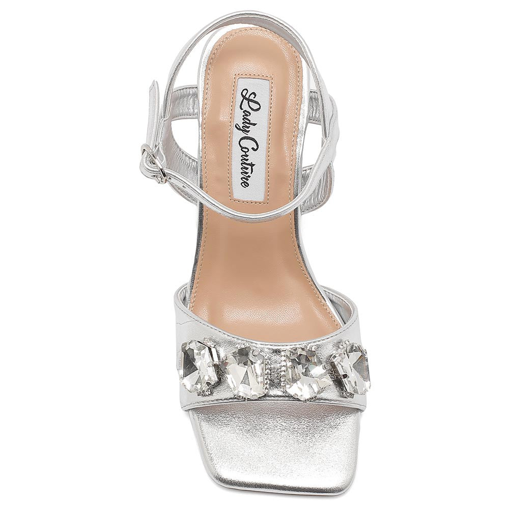 Make a brilliant impression with the Delight 2.5" Silver sandal. The cool silver satin shines under every light, while rhinestones add a touch of enchantment. Designed for elegance and comfort, the sturdy block heel ensures confident strides at any occasion. From bridal looks to cocktail parties, Lady Couture Shoes in silver are your ticket to show-stopping glam and all-day comfort.