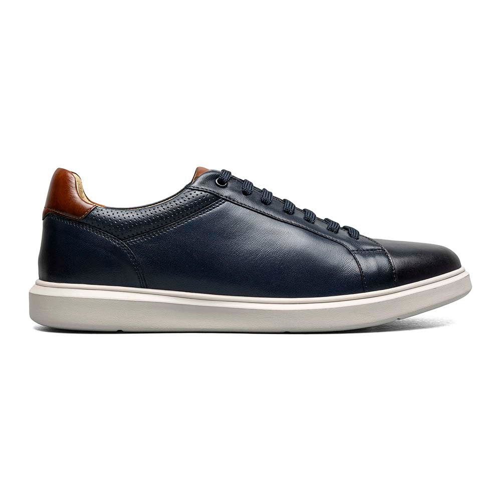 Dive into the deep hues of the Navy Florsheim Social Lace To Toe Sneaker, a perfect blend of style and comfort. Its rich leather upper, adorned with eye-catching perf details on the collar, offers a modern twist on traditional sneakers. The interior boasts breathable mesh linings and a Comfortech footbed, ensuring your feet stay comfortable and supported, whether you're navigating the workday or exploring the city at night.