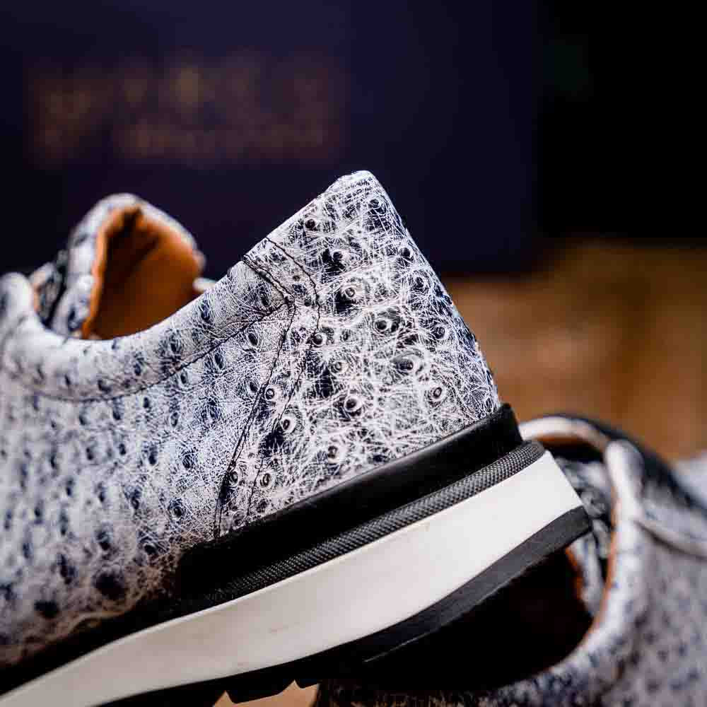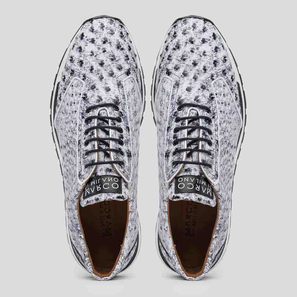 Make a bold statement with Marco Di Milano Scanno Newspaper Ostrich Sneakers, where innovative design meets unparalleled craftsmanship.